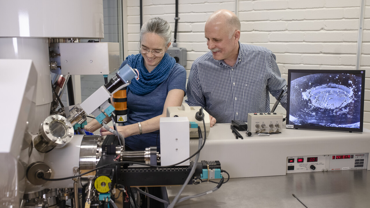 Andrey Shchukarev, föreståndare för XPS-plattformen, och AXIS Ultra DLD electron spectrometer